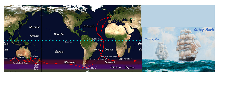 Fueron así destacados transportes en distintos comercios, como veremos por ejemplo el del té entre Europa y Asia (India y China) de la lana, (Australia y Europa) y luego la sal y el guano (Américas del Norte y Sur, por el Atlántico y el Pacífico).