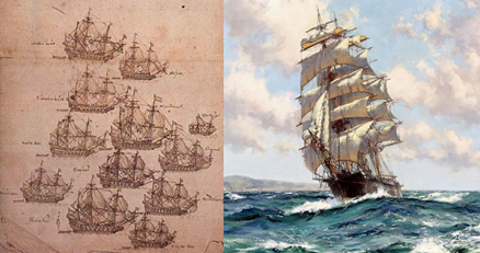 Con tres mástiles y cascos voluminosos y redondeados, tardaban 6 a 8 meses en la vuelta completa.