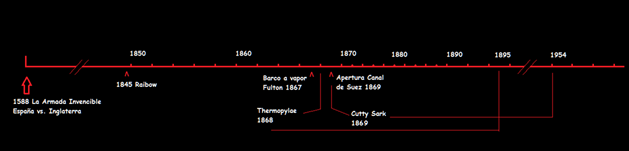 En esta línea de tiempo se observa que hay un estrecho margen entre la creación de los barcos a los que nos hemos referido, el Thermopilae (1868), el Cutty Sark (1869), el barco a vapor de Fulton (1867) y la apertura del canal de Suez (1869). Por lo tanto, esta coexistencia ha permitido, con estos y otros ejemplos, demostrar que los veleros llamados clippers han sido igual o más rápidos que los “vapores”. Así el SS Great Eastern, el SS Savannah y el SS City of New York, fueron superados en algunas ocasiones por clippers más rápidos.